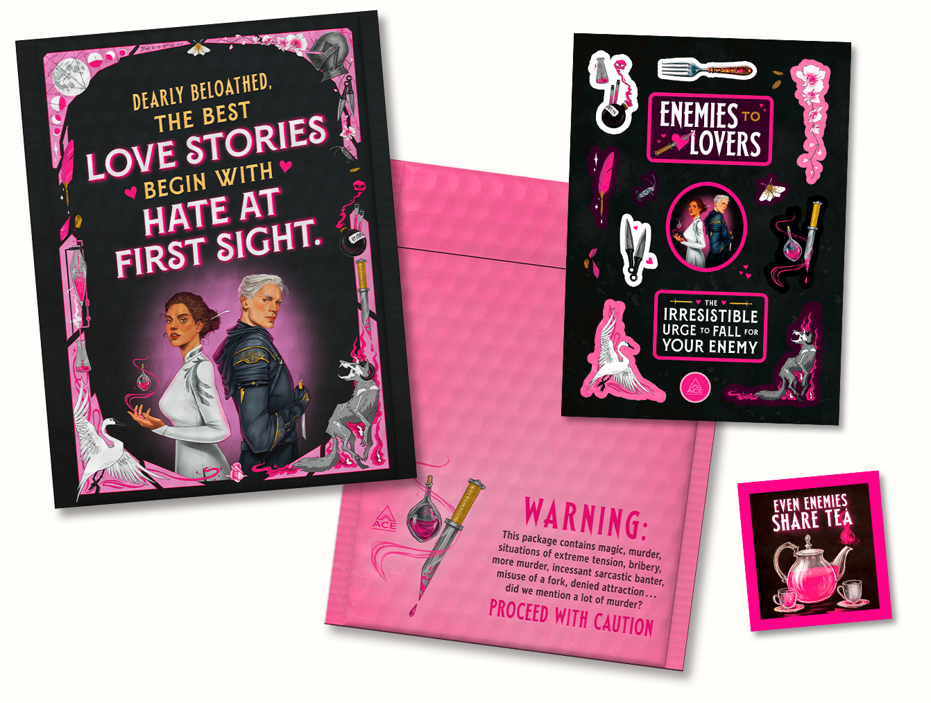 The promotional mailer designs I created for this title included: a jiffy mailer, sticker sheet, foiled bookmark, custom tea sachet sticker, and a Lunar Moon Cycle booklet, where the main character tracks moon phases to assist in her research.