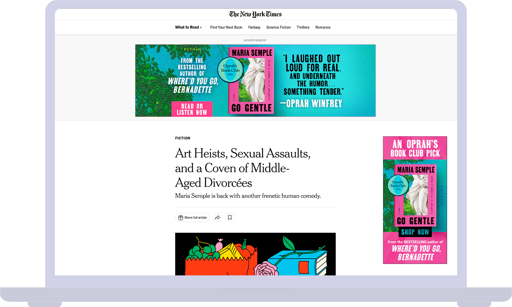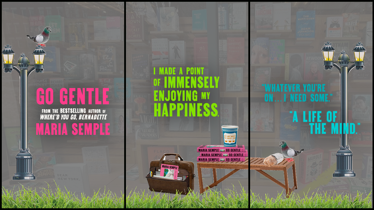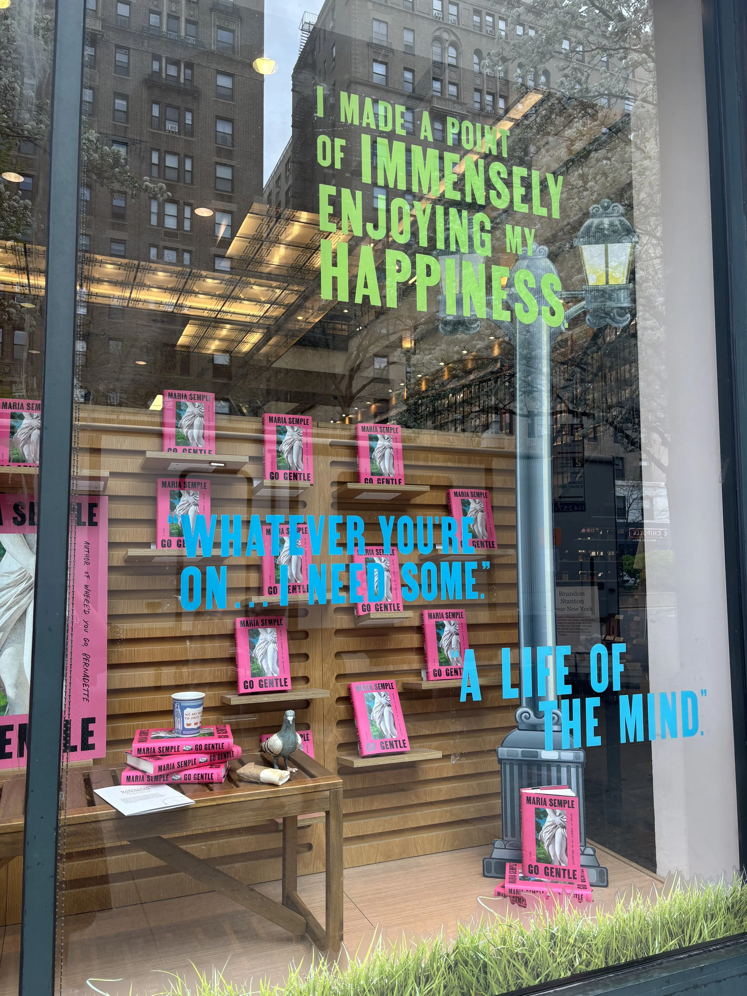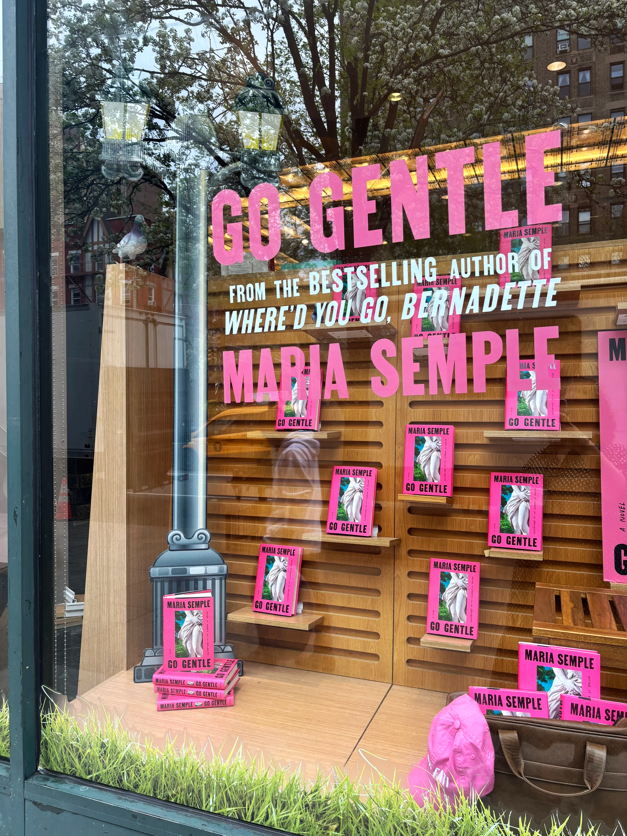 I partnered with marketing to conceptualize and execute an eye-catching window display at Barnes and Noble’s Upper West Side location for the promotion of Maria Semple’s newest novel Go Gentle.